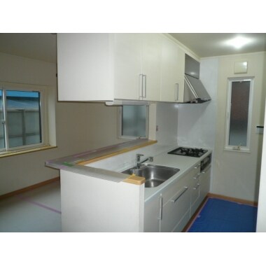 カウンター幅いっぱいに設置されているキッチンは扉面材などに若干経年劣化等が見られました。