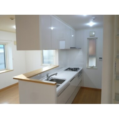 既存カウンター内キッチンを交換させていただきました。白色グロス面材で明るく清潔感あふれるキッチンになりました。